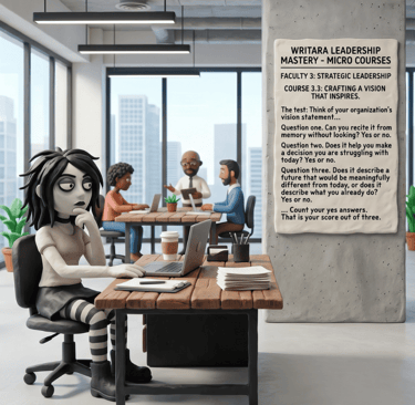 Failure mode. You write a vision that is grammatically correct and emotionally flat. It uses words like "excellence," "innovation," "integrity." No one sees anything.